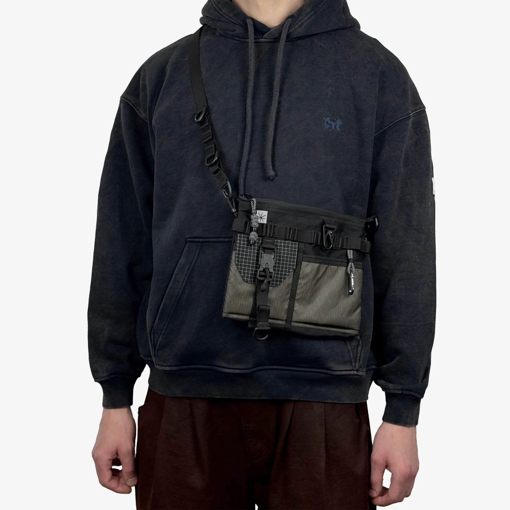 Немного увеличенная версия нашей популярной компактной сумки. Основное отделение на молнии. Спереди два объемных кармана, один на магнитном фастексе, ряд молле для крепления. В комплекте регулирующийся ремешок. Высота 20см Ширина 23см Вход по молнии 21см Карман поменьше 11см на 10см Карман побольше 11см на 12см