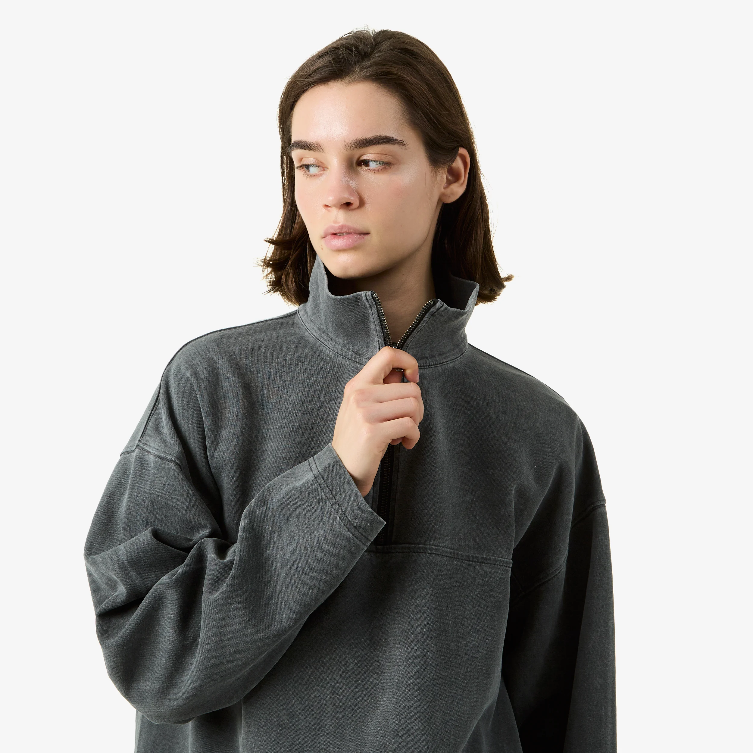 HALF ZIP GARMENT DYED Grey
