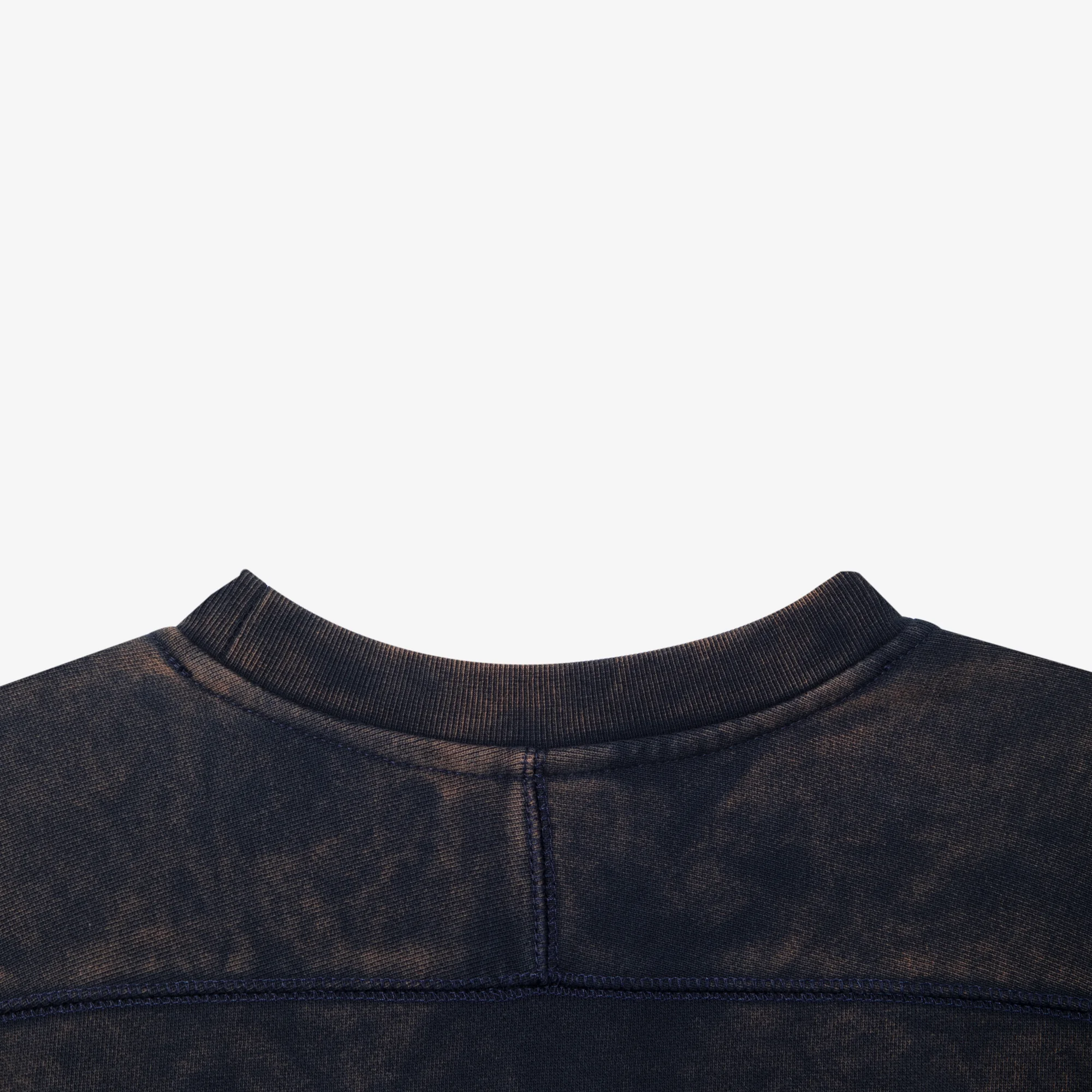 Свитшот универсального свободного кроя с акцентными швами, сшитый из плотного и износостойкого хлопкового футера с петельчатой изнанкой. Эта модель была предварительно постирана с энзимами для достижения винтажного вида и неповторимого "мраморного" узора материала. Каждый узор уникален — двух похожих свитшотов вы не найдете. Материал: 100% хлопок, 500 гр. Плотный и износостойкий футер с петельчатой изнанкой Энзимная стирка для придания силуэту винтажного вида Свободный крой, унисекс Акцентные швы на спине Тональная вышивка МЕЧ на груди Эластичные манжеты
