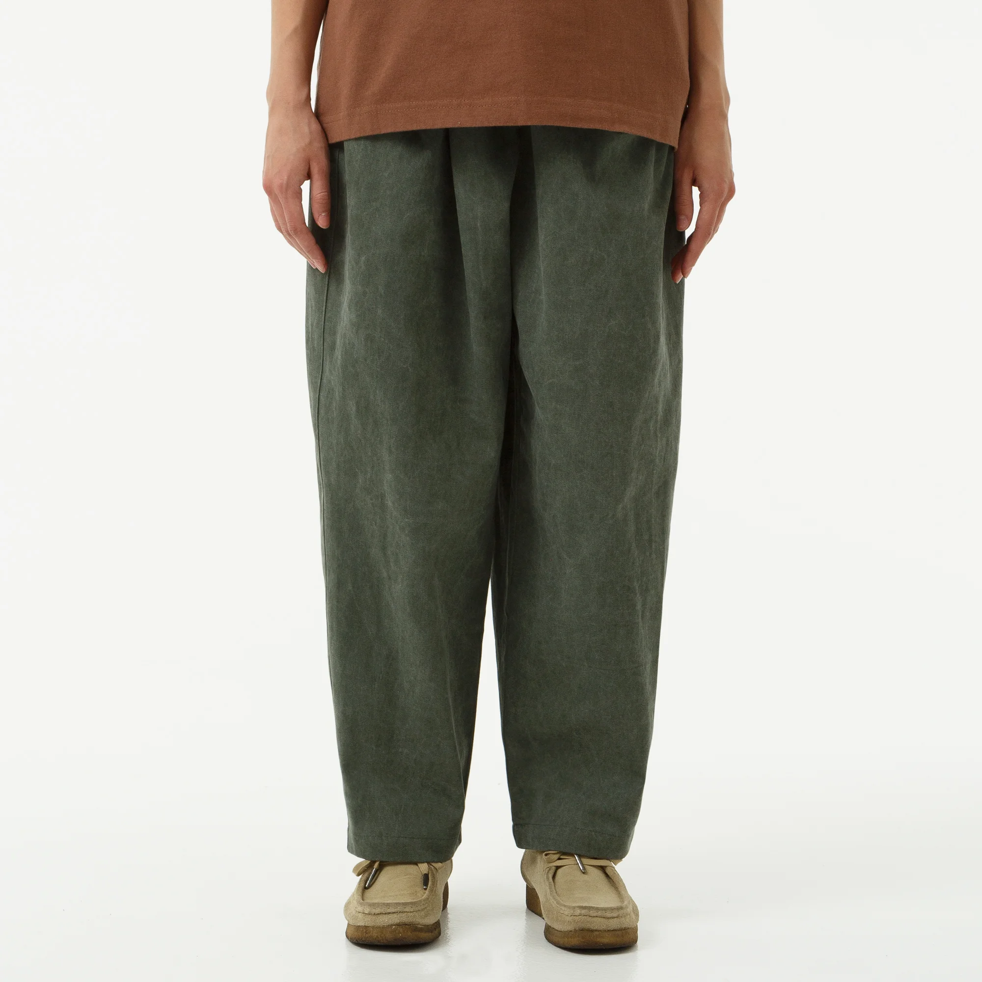 Брюки с нотками винтажного стиля Ivy League. Они сшиты из плотной и износостойкой хлопковой ткани, предварительно окрашенной для плавного перехода тона. Универсальный силуэт, подходящий на любой тип фигуры: свободный в бёдрах, с эластичной регулируемой вставкой на линии пояса и широкой штаниной, сужающейся от колена. А ряд вертикальных складок спереди обеспечат свободу движений. Брюки представлены в трех универсальных размерах унисекс: Размер «XS» подойдет тем, кто носит брюки XS, S и M. «S/M» подойдет тем, кто носит наши брюки прошлых сезонов размеров S, M и, возможно, L. «L/XL» подойдет тем, кто носит брюки больших размеров или предпочитает очень широкую посадку. Рекомендуем ознакомиться с размерной сеткой. Материал: 100% хлопок Плотная и износостойкая ткань, предварительно окрашенная для перехода тона Стандартная посадка на талии, универсальная длина унисекс Свободный в бёдрах силуэт, широкая штанина, сужающаяся от колена Вертикальные складки спереди для комфорта и свободы движений Благодаря эластичной вставке на линии пояса брюки идеально подойдут на любой типфигуры С помощью боковых застежек вы можете слегка изменить ширину пояса брюк Шлевки для ремня Застежка на молнии и пуговицы Два врезных кармана спереди Два врезных кармана сзади с клапанами на пуговицах Патч МЕЧ над задним карманом